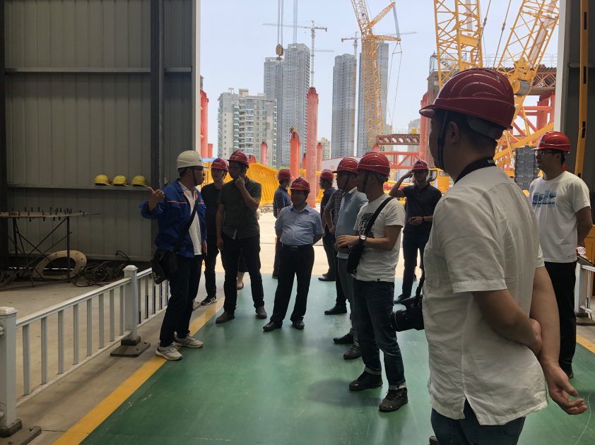 在考察學(xué)習(xí)期間,考察人員首先前往第一站中鐵大橋局七公司楊泗港青菱段斜拉橋工程項(xiàng)目,該項(xiàng)目負(fù)責(zé)人李斌帶領(lǐng)我司考察學(xué)習(xí)人員深入楊泗港大橋主塔施工現(xiàn)場(chǎng),參觀了該項(xiàng)目的主塔工程,項(xiàng)目負(fù)責(zé)人向大家詳細(xì)介紹了該項(xiàng)目的工程建設(shè)情況,該工程臨近鐵路,工程進(jìn)度任務(wù)極重,施工組織及施工技術(shù)要求高、施工難度大,并就相關(guān)問(wèn)題與大家進(jìn)行了現(xiàn)場(chǎng)交流。