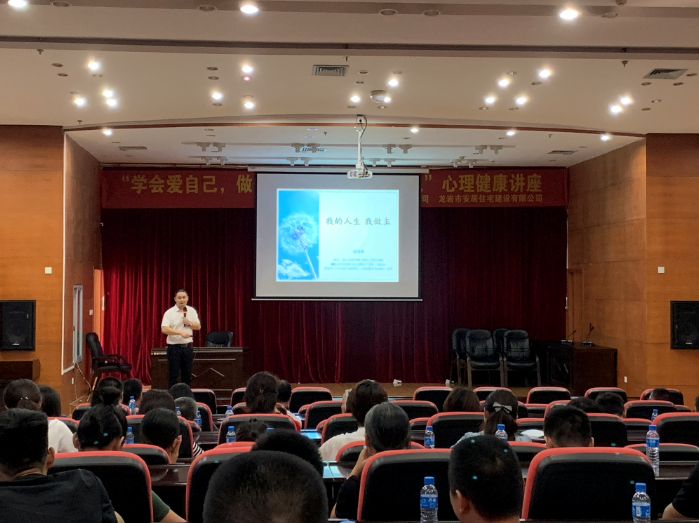 為提高全體員工心理素質(zhì),不斷提升心理健康水平,2019年9月10下午,市城公司和安居公司在建設(shè)大廈四樓第五會議室共同舉辦“學(xué)會愛自己,做個內(nèi)心強大而溫暖的人”心理健康知識講座,特邀請龍巖市第三醫(yī)院康復(fù)科劉主任(國家二級心理咨詢師)前來授課。